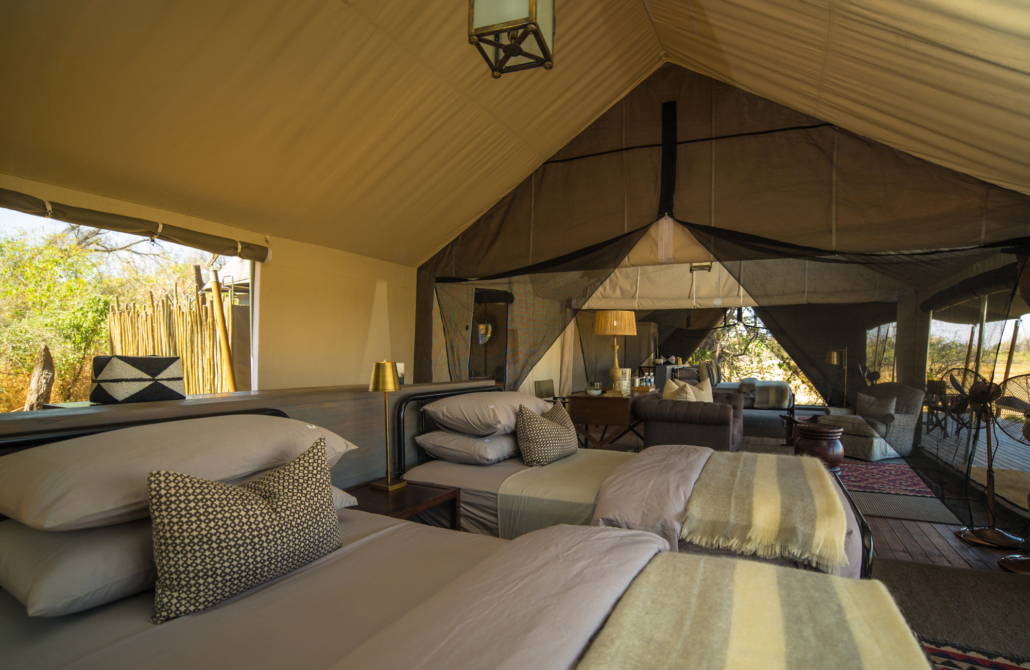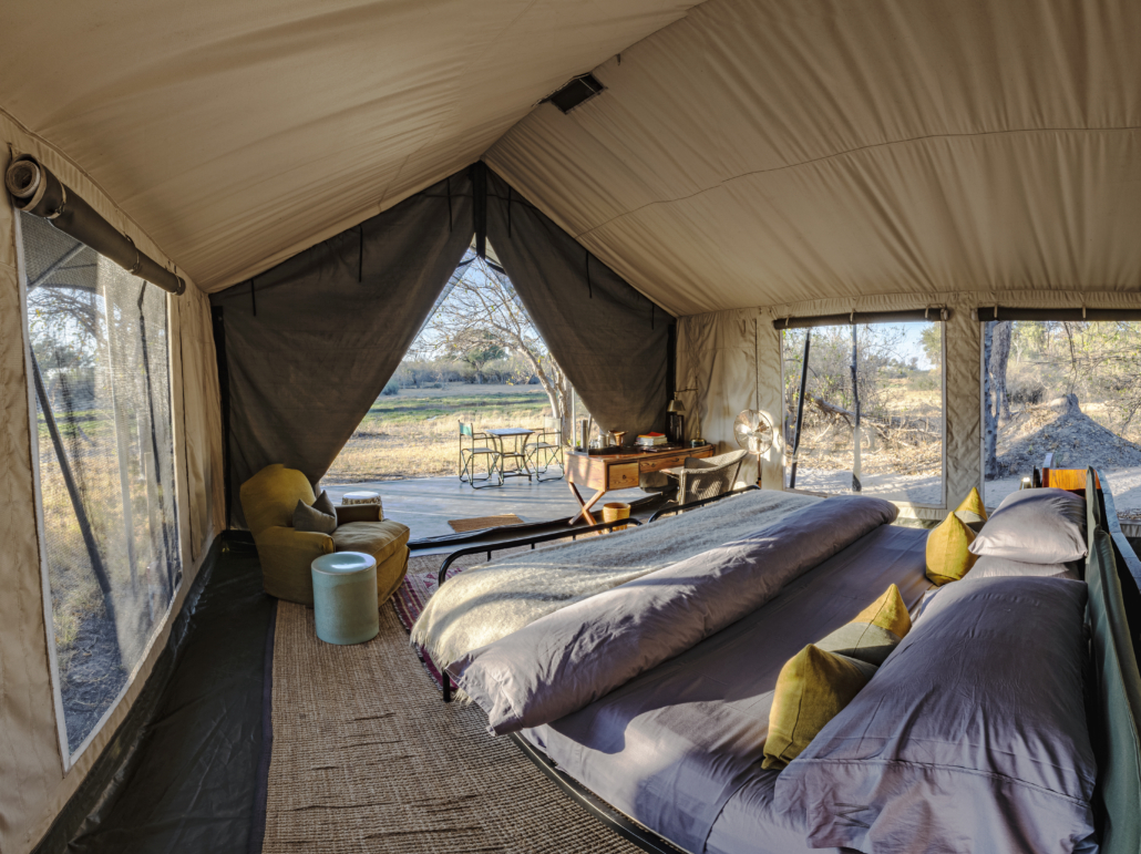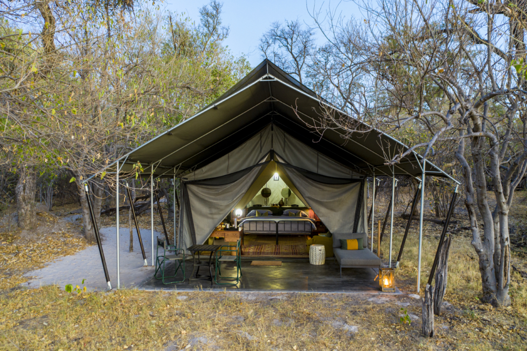 Machaba Camp is an iconic 1950s style safari camp replete with luxury tented rooms containing luxury en-suite bedroom with modern bathroom, patio deck and relaxation area, and romantic outdoor showers. The tents are positioned alongside the picturesque Khwai River to optimise privacy and views of the animals coming to the river’s edge to drink, and are linked by a pathway that meanders between large riverine trees.
